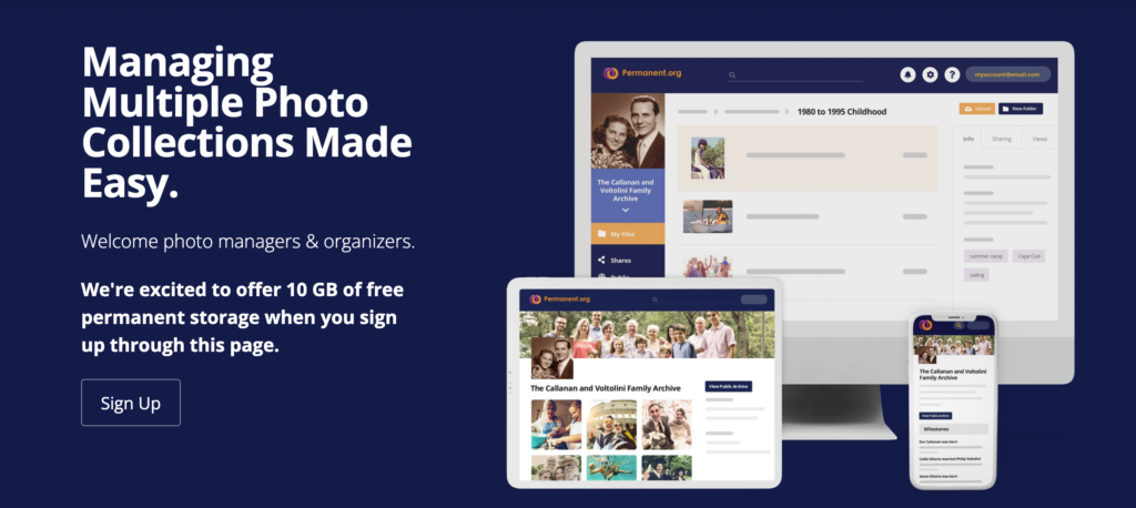 I have the privilege of speaking at The Photo Managers Conference, which is happening in Denver, CO from March 24th-26th! I put together a class that will help professional photo organizers (and really anyone) get motivated to create high quality, digital archives for their clients and families. Once you take the class I am sure you will be eager to get started digitizing your photos with a professional or helping someone else, such as a client, do this. Simply start by creating a Permanent.org account and then check out the resources below where you will find marketing tips, family tree organizers, and more! There is also a link to the slide deck leading to our Permanent.org Public Archive from the in-person portion of this class where we discussed archives in more detail.