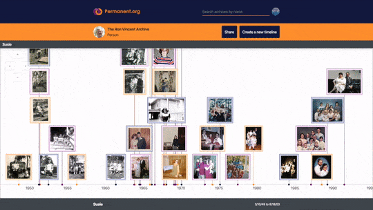 All you have to do to get started is click the “create a new timeline” button at the top of any timeline, including Ron’s above. Once you’re logged in to your Permanent Archive, we’ll walk you through 3 simple steps to add your memories and generate your timeline.